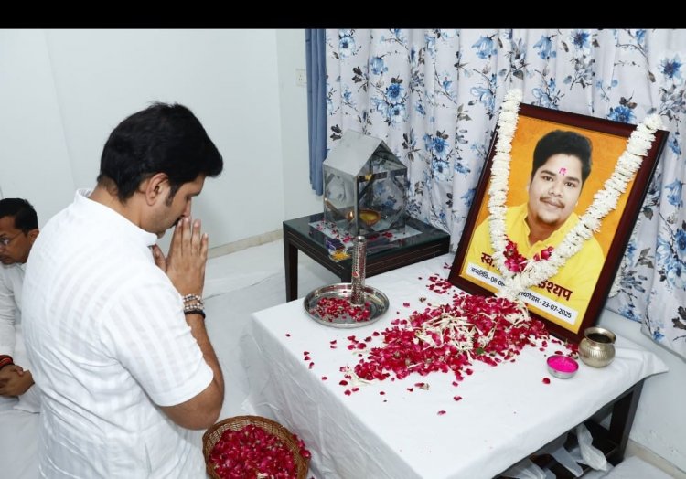 आज फरसगुड़ा में पूर्व सांसद दिनेश कश्यप जी के सुपुत्र एवं कैबिनेट मंत्री केदार कश्यप जी के भतीजे स्व. निखिल कश्यप जी के तैलचित्र पर पुष्प अर्पित कर भाजपा प्रदेश अध्यक्ष किरण देव जी ने विनम्र श्रद्धांजलि दी एवं शोकाकुल परिवारजनों से मिलकर संवेदनाएं व्यक्त की।
