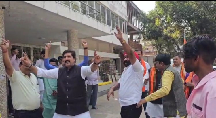 भाजपा प्रदेश एवं जिला कार्यालय में आतिशबाजी कर मनाया जश्न