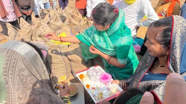 डाही में समर्थन मूल्य पर धान खरीदी शुरू, रंजना साहू हुई शामिल, किसानों की सुविधा बढ़ाने हेतु खरीदी केंद्र में नए शेड निर्माण का हुआ भूमिपूजन,
