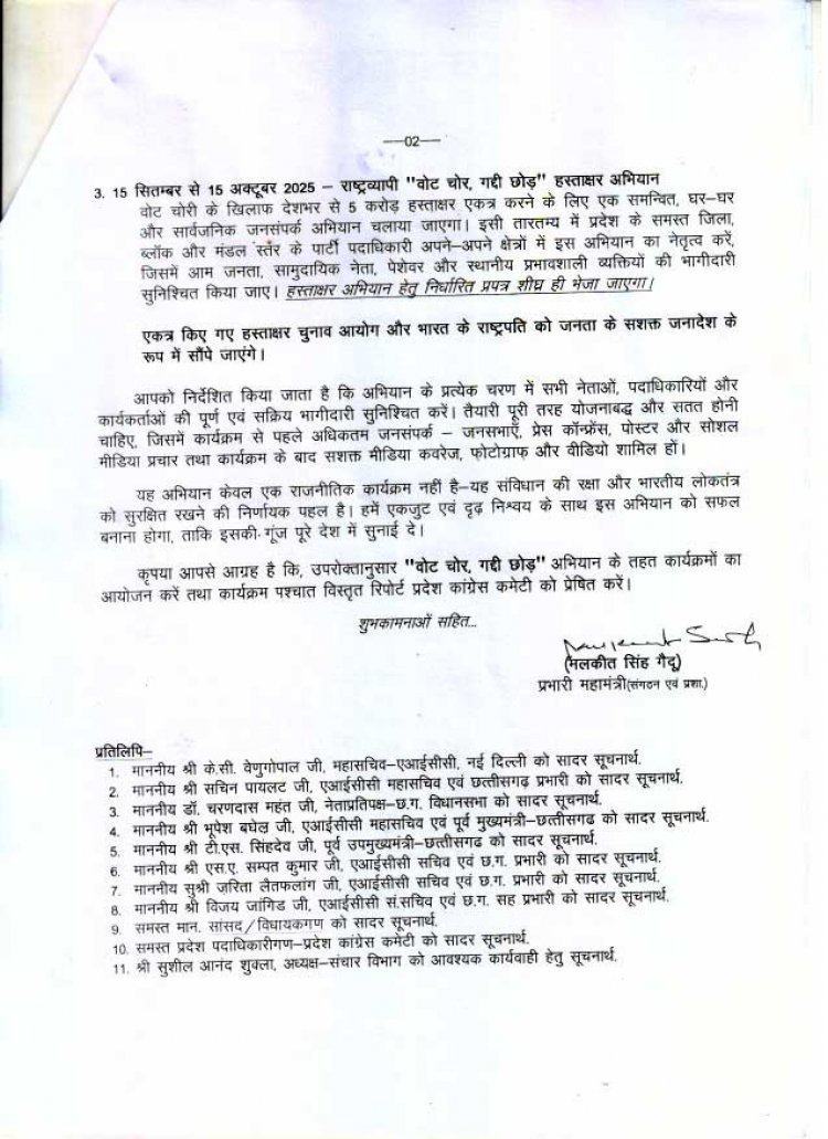 कल AICC के जनरल सीक्रेटरीज़ की बैठक के बाद जारी किया गया “वोट चोर,गद्दी छोड़” आंदोलन का कार्यक्रम