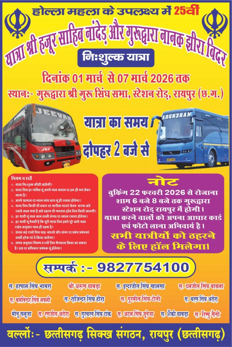 1200 लोगों को निशुल्क तीर्थ यात्रा -छत्तीसगढ़ सिक्ख संगठन का सिल्वर जुबली आयोजन
