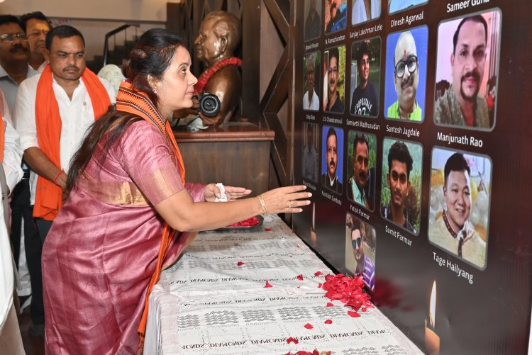 रायपुर - आज राजधानी शहर के जीईमार्ग में रजबंधा मैदान में शहीद स्मारक भवन के प्रवेश द्वार पर राजधानी शहर की प्रथम नागरिक नगर पालिक निगम रायपुर की महापौर श्रीमती मीनल चौबे ने विगत 22 अप्रैल 2025 को जम्मू कश्मीर के पहलगाम में हुए कायराना आतंकी हमले में दिवंगत समता कॉलोनी रायपुर निवासी दिनेश मिरानिया सहित सभी 26 दिवंगत आत्माओं को समस्त राजधानीवासियों की ओर से पुष्पांजलि अर्पित करते हुए आदरांजलि अर्पित की. विशेष सामान्य सम्मिलन की बैठक के पूर्व शहीद स्मारक भवन में नगर निगम सभापति श्री सूर्यकान्त राठौड़, निगम नेता प्रतिपक्ष सन्दीप साहू, नगर निगम आयुक्त श्री विश्वदीप, सभी एमआईसी सदस्यों, जोन अध्यक्षगणों, वार्ड पार्षदों, नगर निगम अधिकारियों, प्रिंट ओर इलेक्ट्रॉनिक मीडिया के प्रतिनिधियों ने जम्मू कश्मीर के पहलगाम के आतंकी हमले में दिवंगत रायपुर निवासी दिनेश मिरानिया सहित सभी 26 दिवंगत आत्माओं के छायाचित्र में पुष्पांजलि अर्पित कर उन्हें श्रद्धांजलि दी. शहीद स्मारक भवन के सभागार में विशेष सामन्य सम्मिलन की बैठक के पूर्व मंच से आसन्दी से नगर निगम सभापति श्री सूर्यकान्त राठौड़ ने विगत 22 अप्रैल 2025 को आतंकी हमले में दिवंगत रायपुर निवासी दिनेश मिरानिया सहित सभी 26 दिवंगत आत्माओं को सामूहिक मौन श्रद्धांजलि देने नगर निगम सदन के समक्ष प्रस्ताव का पठन किया. सभापति श्री सूर्यकान्त राठौड़, महापौर श्रीमती मीनल चौबे,नेता प्रतिपक्ष श्री सन्दीप साहू, आयुक्त श्री विश्वदीप, सभी एमआईसी सदस्यों, जोन अध्यक्षगणों, पार्षदों, नगर अधिकारियों, प्रिंट ओर इलेक्ट्रॉनिक मीडिया के प्रतिनिधियों ने दो मिनट की सामूहिक मौन श्रदांजलि पहलगाम के आतंकी हमले में दिवंगत सभी 26 दिवंगत आत्माओं को दी.