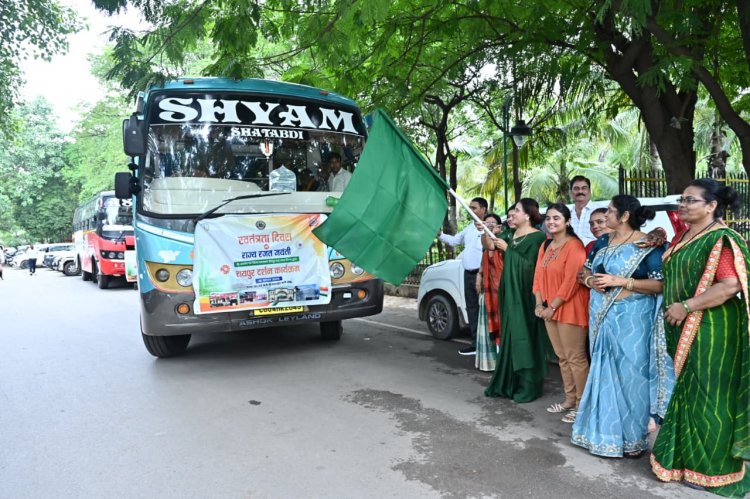 80 वरिष्ठ नागरिको की रायपुर दर्शन यात्रा को वरिष्ठ नागरिको को सम्मानित कर महापौर मीनल चौबे ने हरी झंडी दिखाकर टाउनहॉल से किया रवाना