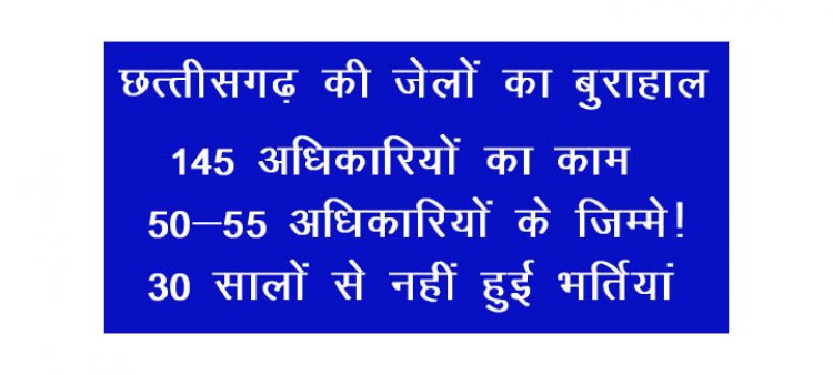 *छत्तीसगढ़ की जेलों का बुरा हाल, 145 अधिकारियों का काम 50 - 55 अधिकारियों के जिम्मे*